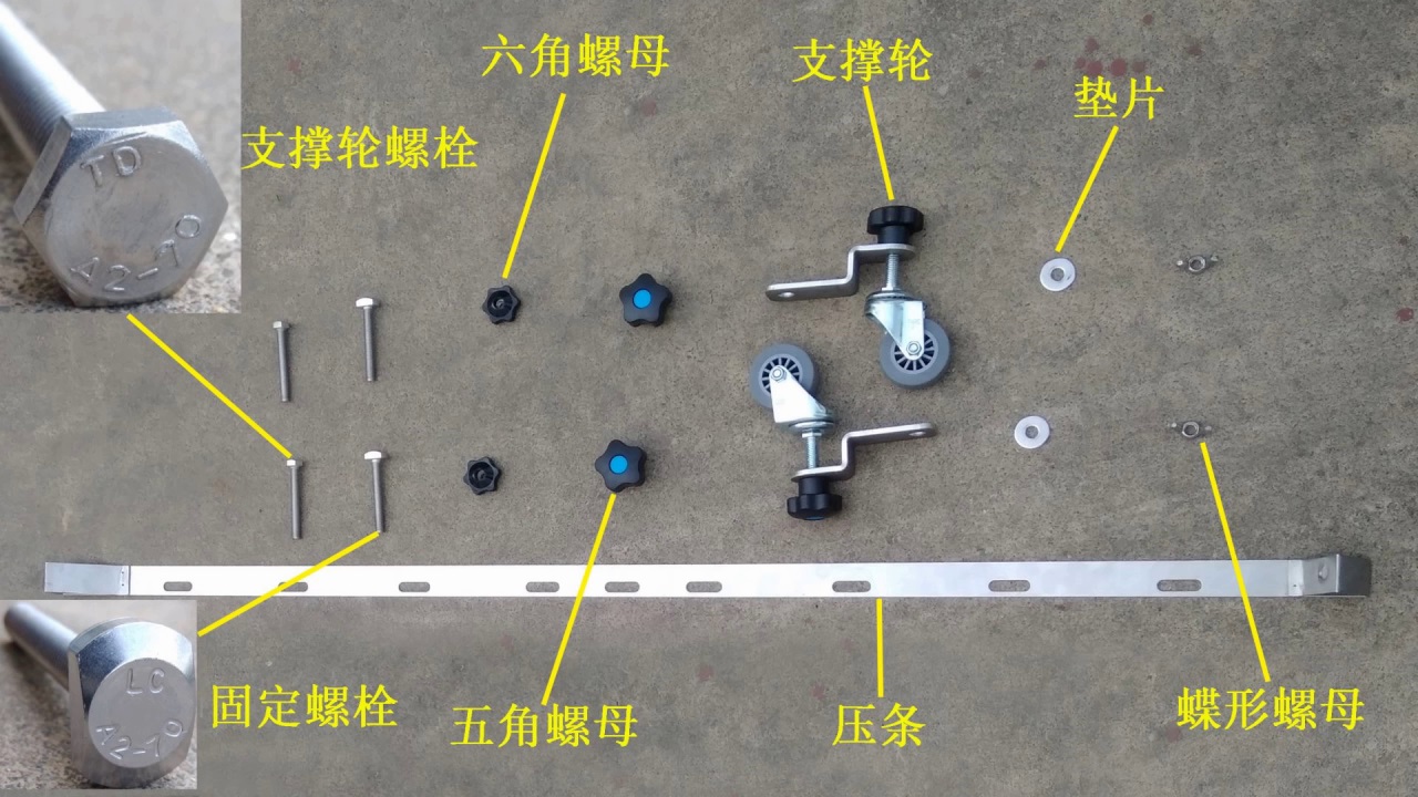 2.安裝兩個固定螺栓和兩個支撐輪螺栓